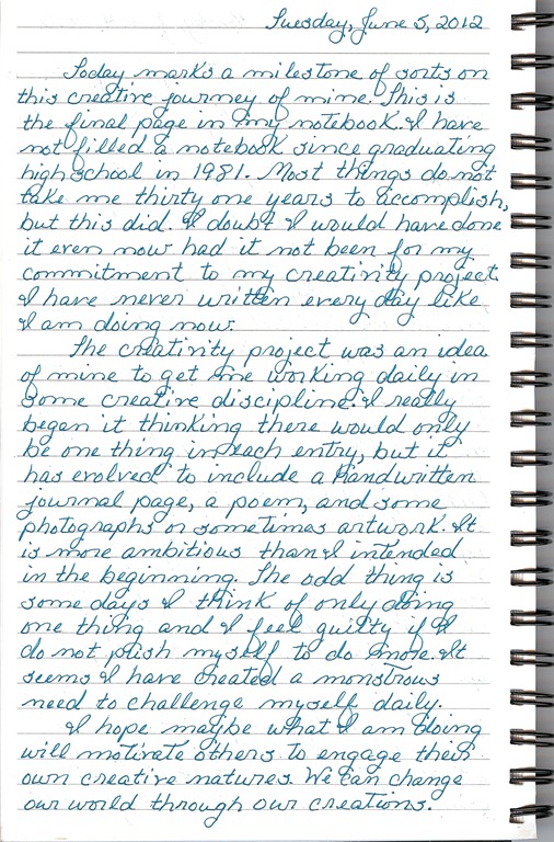 I love your idea of changing the world thru our creations JoAnn! That’s exactly what I want to do. Your handwriting is beautiful. You should see mine. There’s no way I would ever photograph my morning pages. Good for you completing an entire journal; you must be proud. I’ve never done managed – that I can recall. Love seeing your photographs too. Don’t you just love photographing flowers? I guess they are always the perfect subject…you know…never moves and always smiles!
