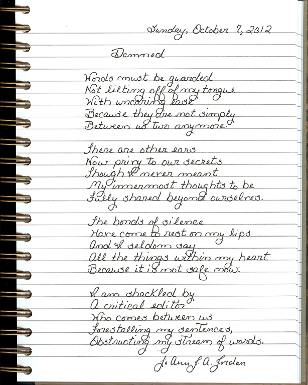 I do not understand, but I seem more able to write poems than journal entries…